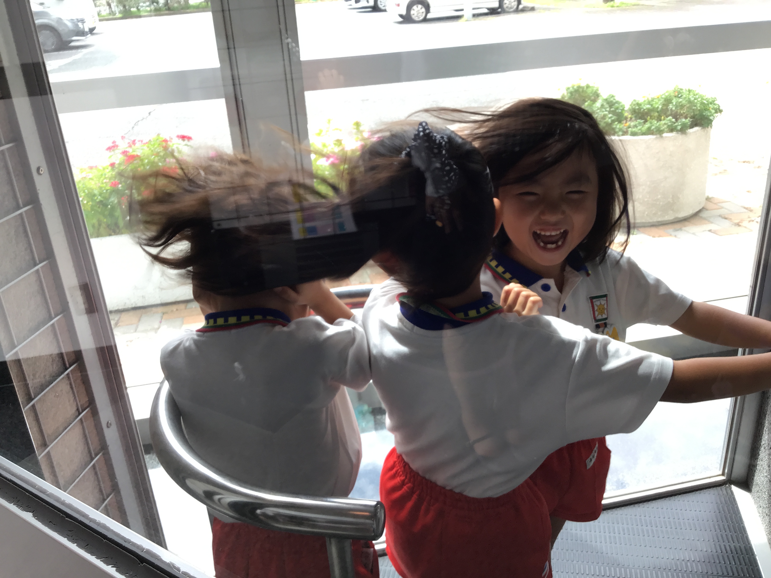 そして「消防車が出動するよ」教えて頂いたので、貴重な出動の瞬間を見に行かせてもらいました。「エンジンかかった!」「何人乗った?」「(赤く)光った!」とその一部始終を真剣に見つめ、サイレンの音の大きさに緊張し、手を振ってくださった隊員の方の姿に「行ってらっしゃい!頑張ってね!」とすべてに夢中でした。