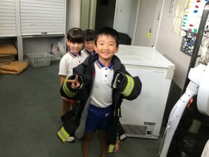 今日は何度も緊急通報が入り、その度に子ども達も静かに耳を傾け、その緊張感をあじわっていました。「大変だね」「また、行くんだって」と仕事の大変さも感じていたようです。