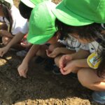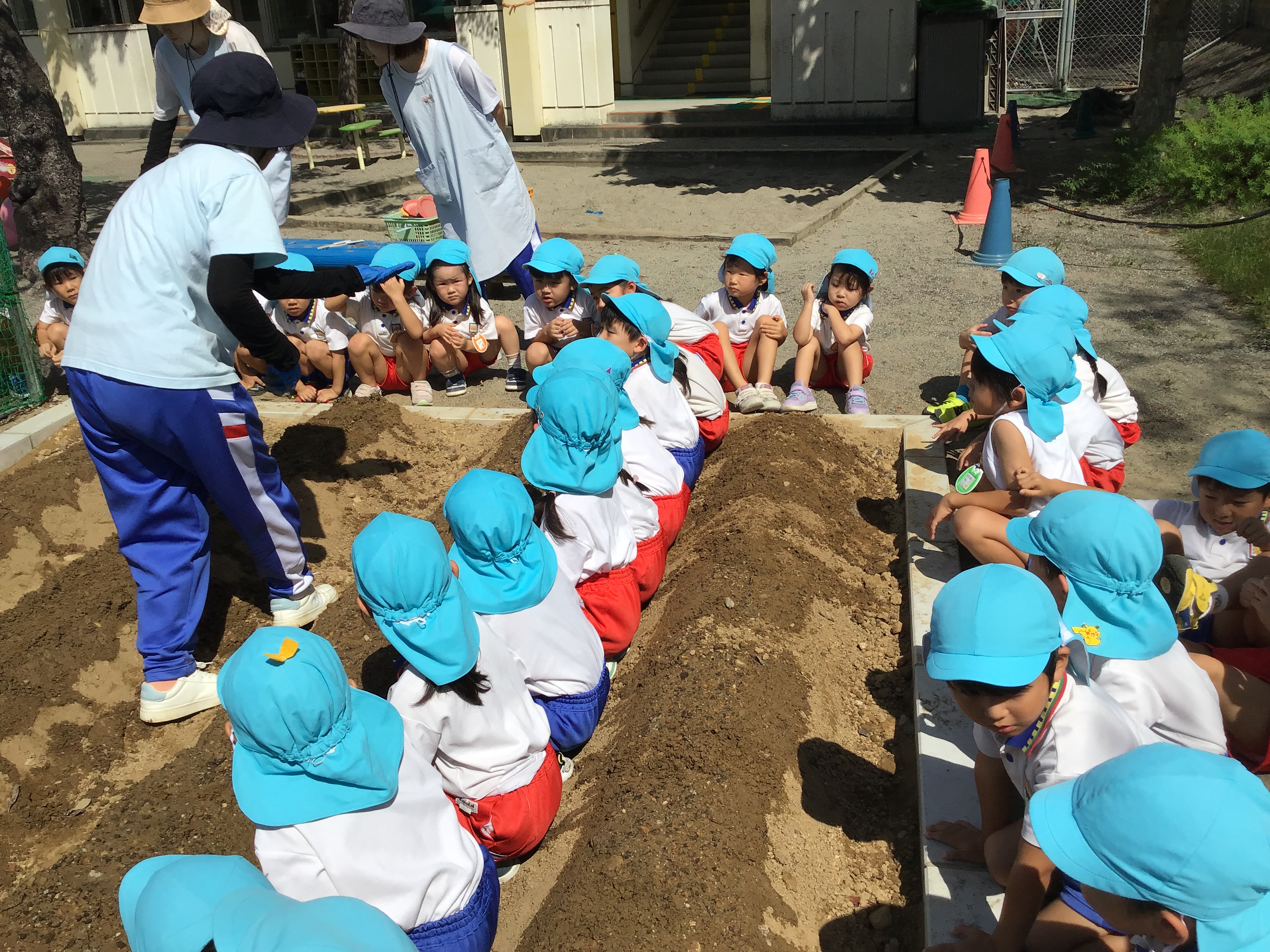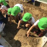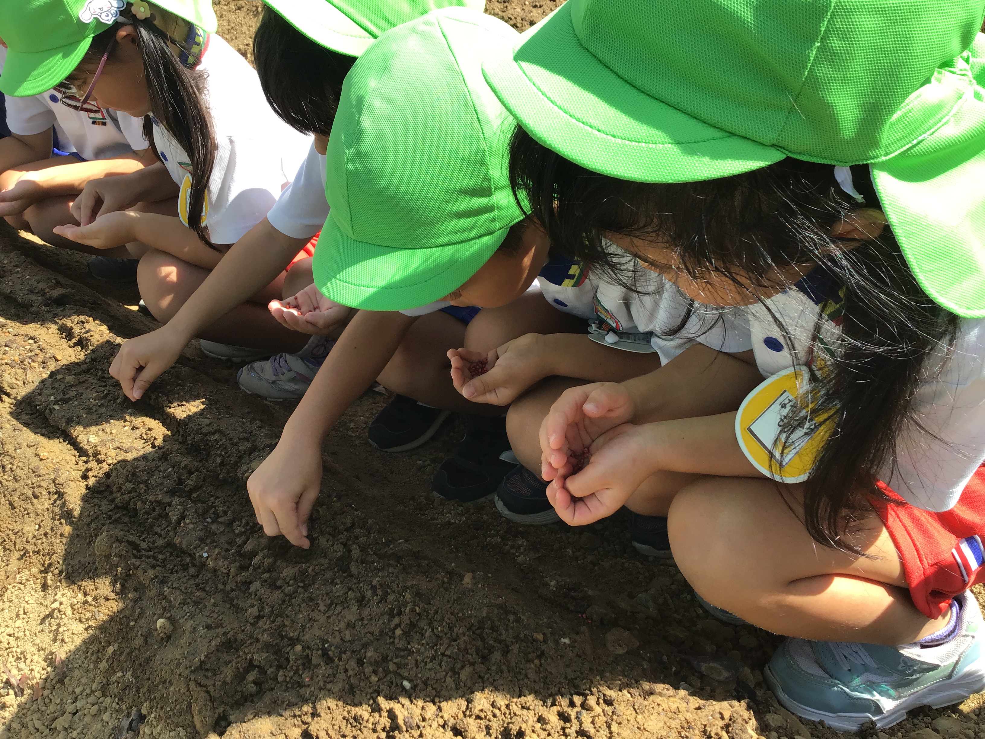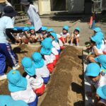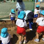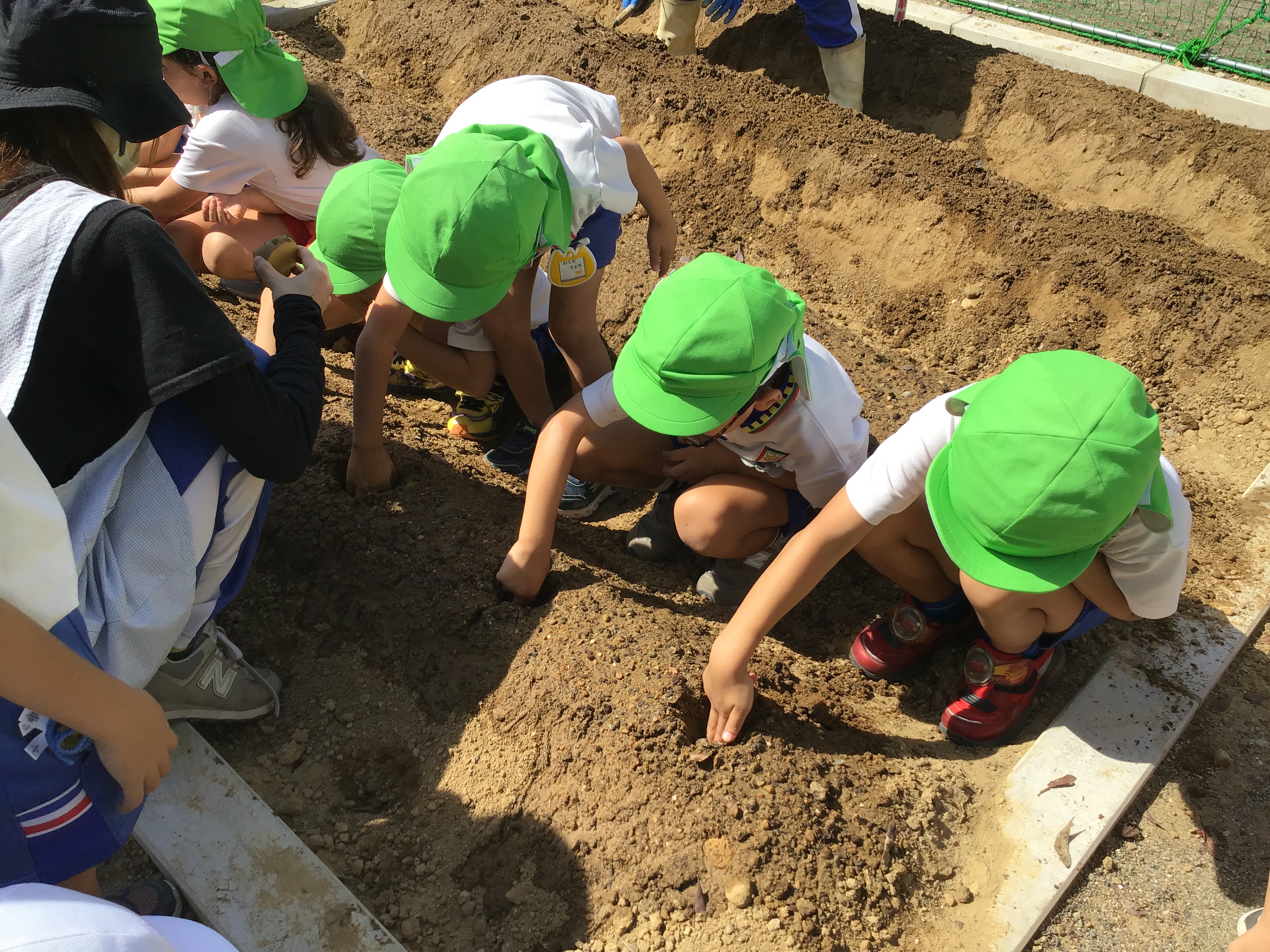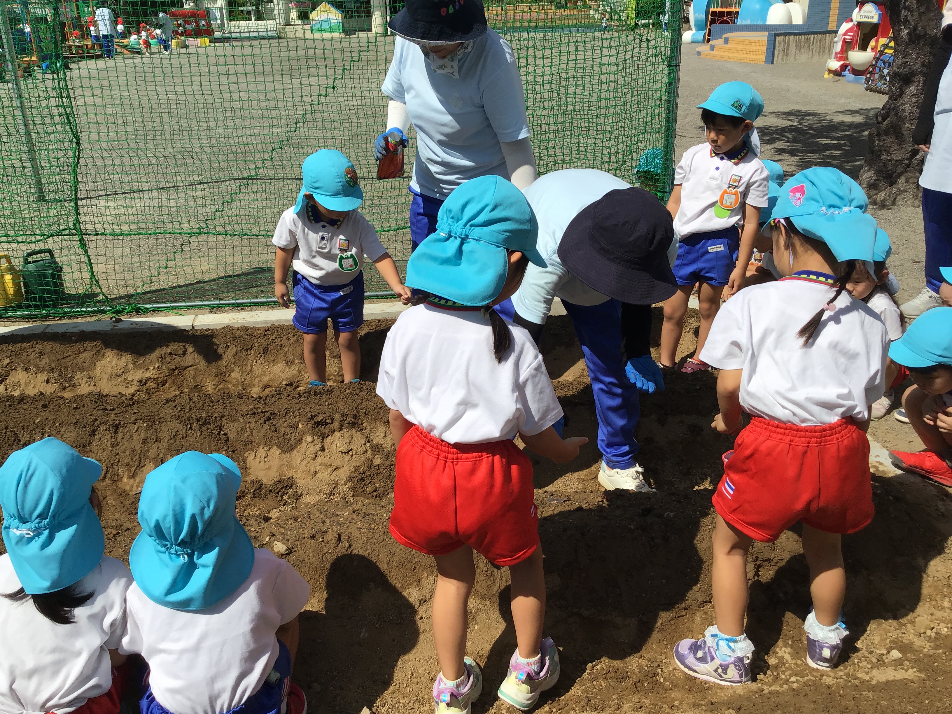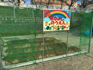 園庭には新しく農園もできました!今ここには年中組が大根と人参、年長組がじゃがいもとほうれん草、小松菜を栽培しています。今までより農園も近くなり、食育活動の幅も広がりそうです。