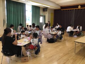 「給食おいしいね!」と親子で頂いたり、「お家では食べないのに幼稚園ではこんなに食べられるのね!」と驚いたりと、新しい気づきもあった給食参観会となりました。