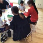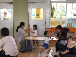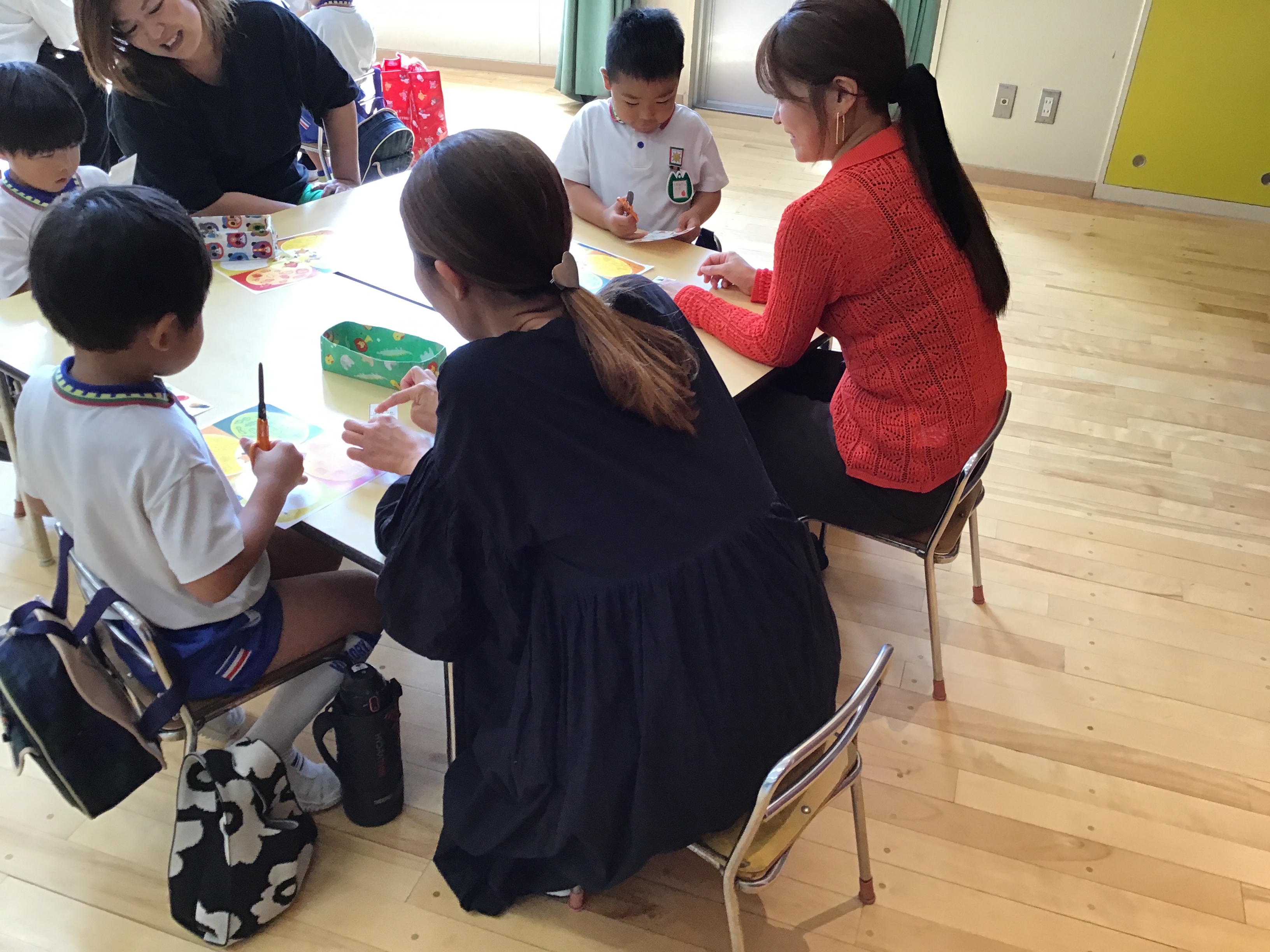 年少組は秋の食べ物ビンゴを行いました。はじめに9つの秋の食材について学んでいきました。旬の野菜や果物を知り「今度、お家でも食べてみようね~」などお家の方との会話も弾んでいました。その後のビンゴゲームも親子で協力して盛り上がっていました!