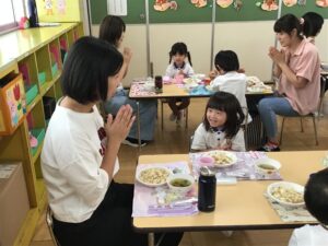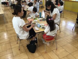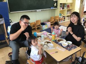 子ども達にとって、おうちの方と食べる給食は、いつも以上に特別でおいしかったことでしょう。生きる上での基本の「食」の大切さを、毎日の食事と共に楽しく学べる環境を、これからも保育の中で取り入れていきたいと思います。