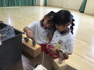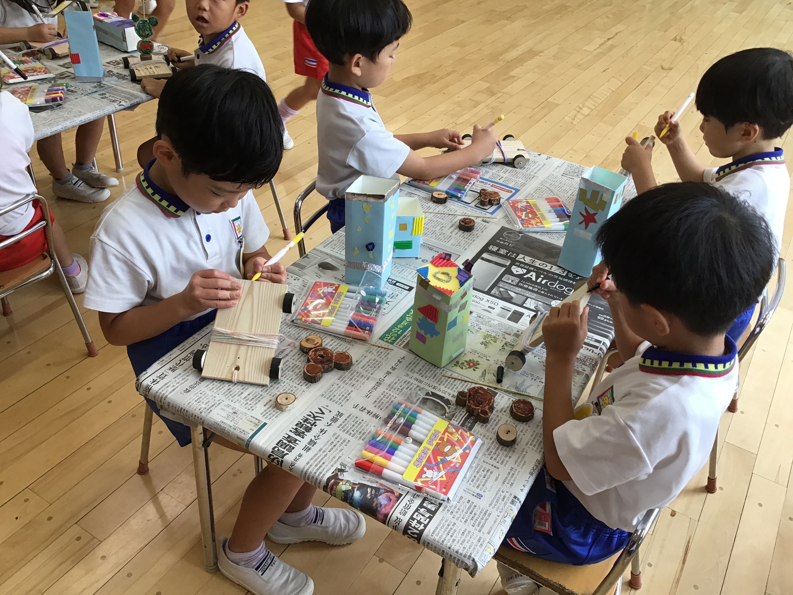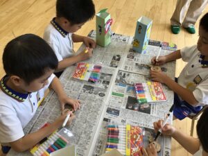 事前に車の後ろに乗せる宝箱の製作を行っていました。気持ちのこもった素敵な宝箱が完成し、大切な宝箱を見つめながら、「早くやりたいなー」とこの日を心待ちにしていました。