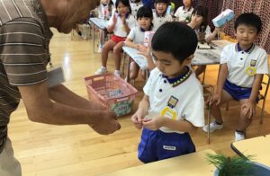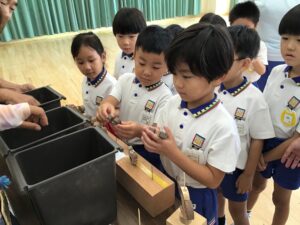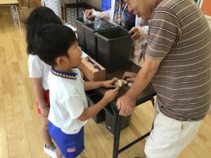 これ!とすぐに決まる子もいれば、じっくり選ぶタイプの子はなかなか決まらず、そんな時はまた列を並びなおして、お好みの大きさ、形が出てくるまで待ってじっくり選んでいました。