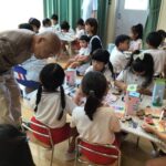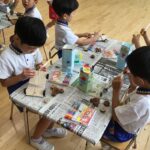 今日は2名の指導員さんにご指導いただきながら、素敵な作品を作っていきます。初めての体験はどんなことをするのかなとドキドキ、ワクワク、面白そう!やってみたい!子ども達の表情からそんな気持ちが伝わってきました。