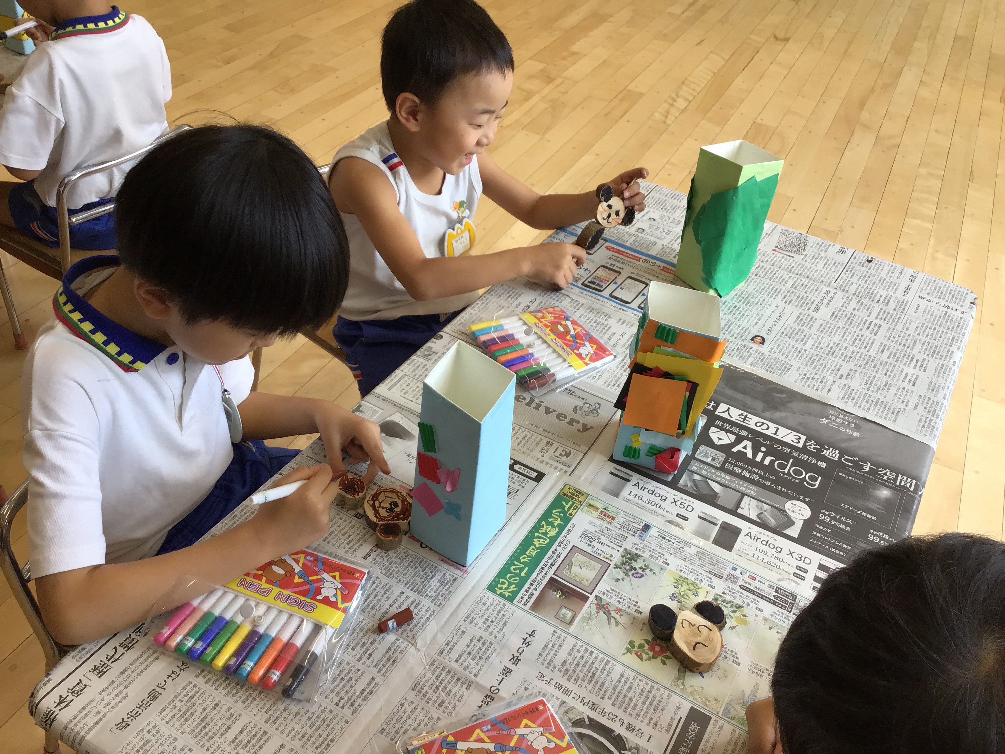 「木にお絵描きするの初めて~」「木って絵が描けるんだね」と木に絵を描く経験は初めてだった為、不思議に思う子もいるようでした。