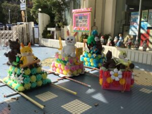 数日前からお神輿の準備も頑張りました!今年のテーマは絵本『どうぞのいす』です。幼稚園の園庭に仲間入りした、新しい遊具が大好きな子ども達にぴったりのお神輿になりました。