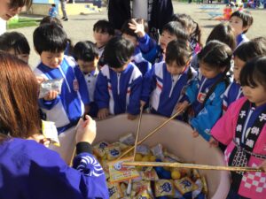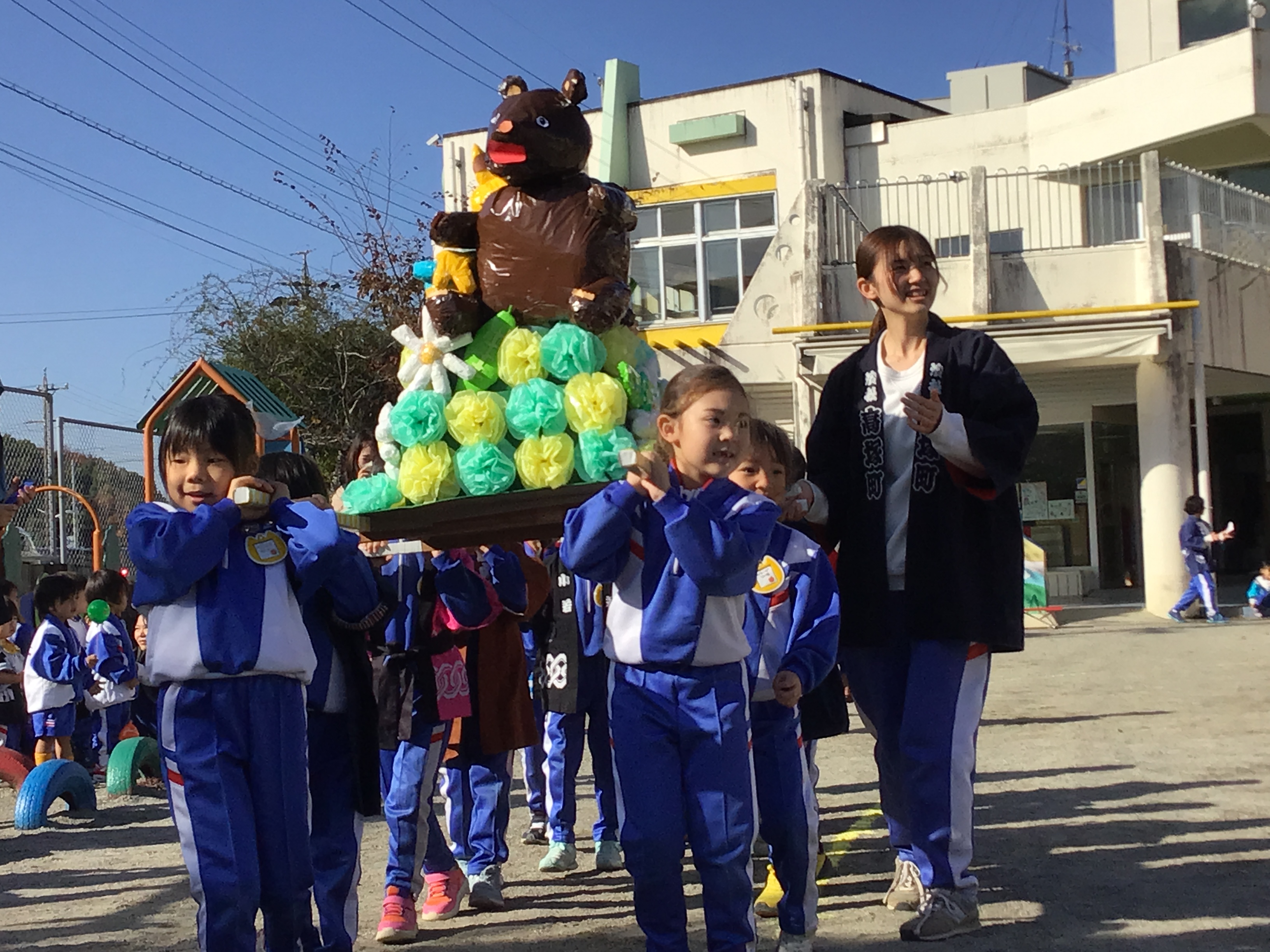 今日は湖東幼稚園の秋まつり!毎年子ども達が楽しみにしている行事の1つです。お天気にも恵まれ、気持ちの良い空の下、園庭では子ども達の笑顔が輝いていました!