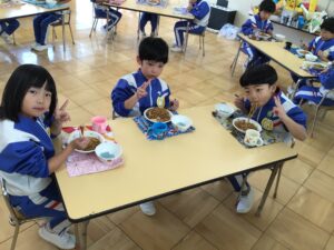 今日は給食もおまつりメニュー🍴焼きそばにウインナー、ソーダゼリーと子ども達が大好きな献立でした。また1つ、思い出に残る行事となりました。