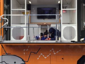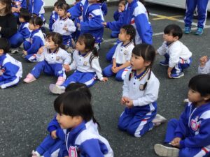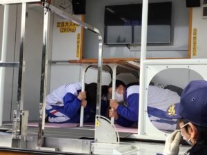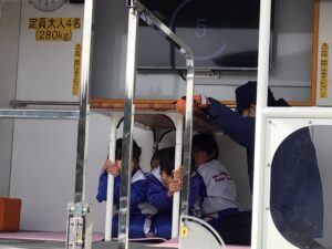 訓練の後には起震車体験をしました。年長組さんは全員。年中組より小さいクラスは各クラスの代表の子が体験しました。