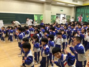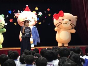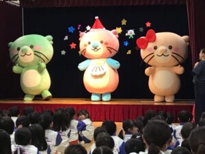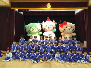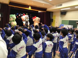 今日は湖東幼稚園に『eらっこファミリー』のアッコさんとかいくんとうみちゃんが遊びにきてくれました♪