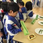 食育活動として、大豆の変身クイズや豆クイズに挑戦しました。