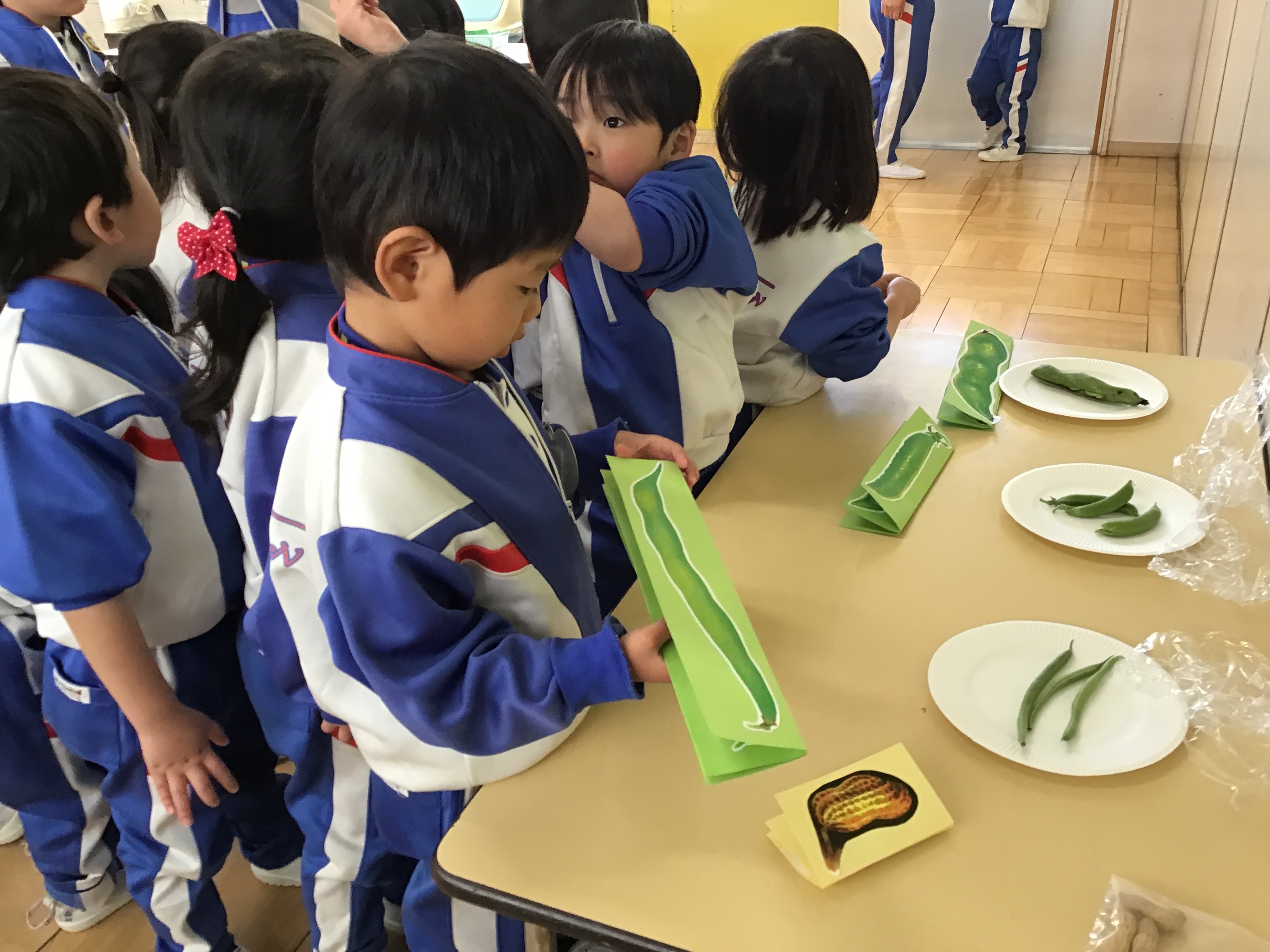 そらまめやえんどう豆、インゲン豆と幼稚園で育てたことのある豆には、自信をもって答えてくれていました🫛