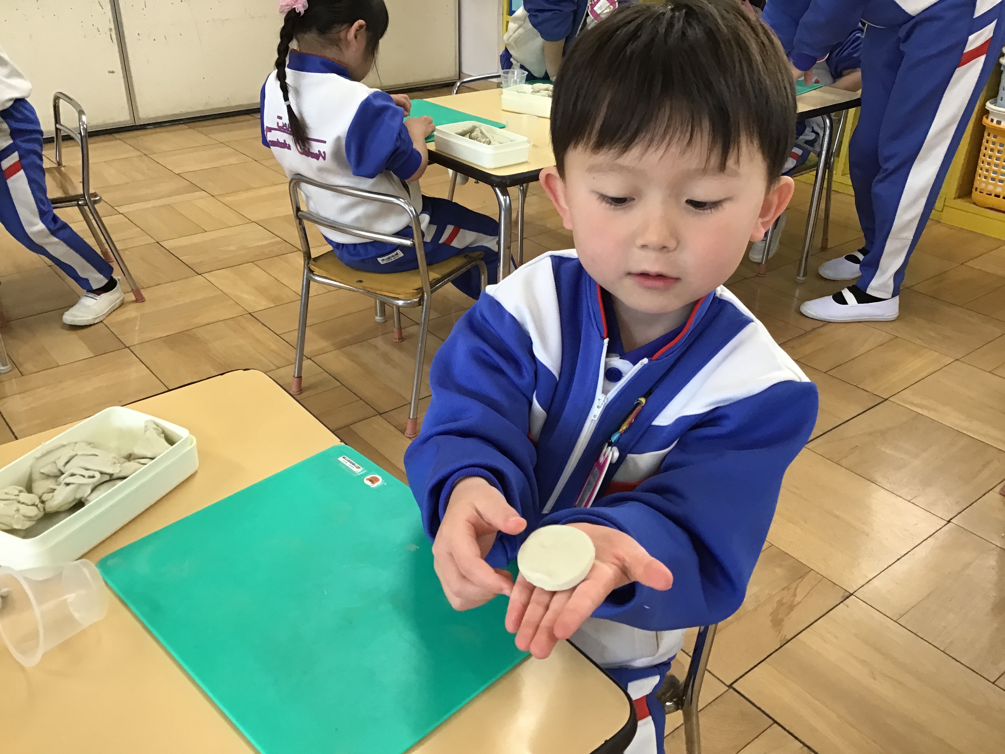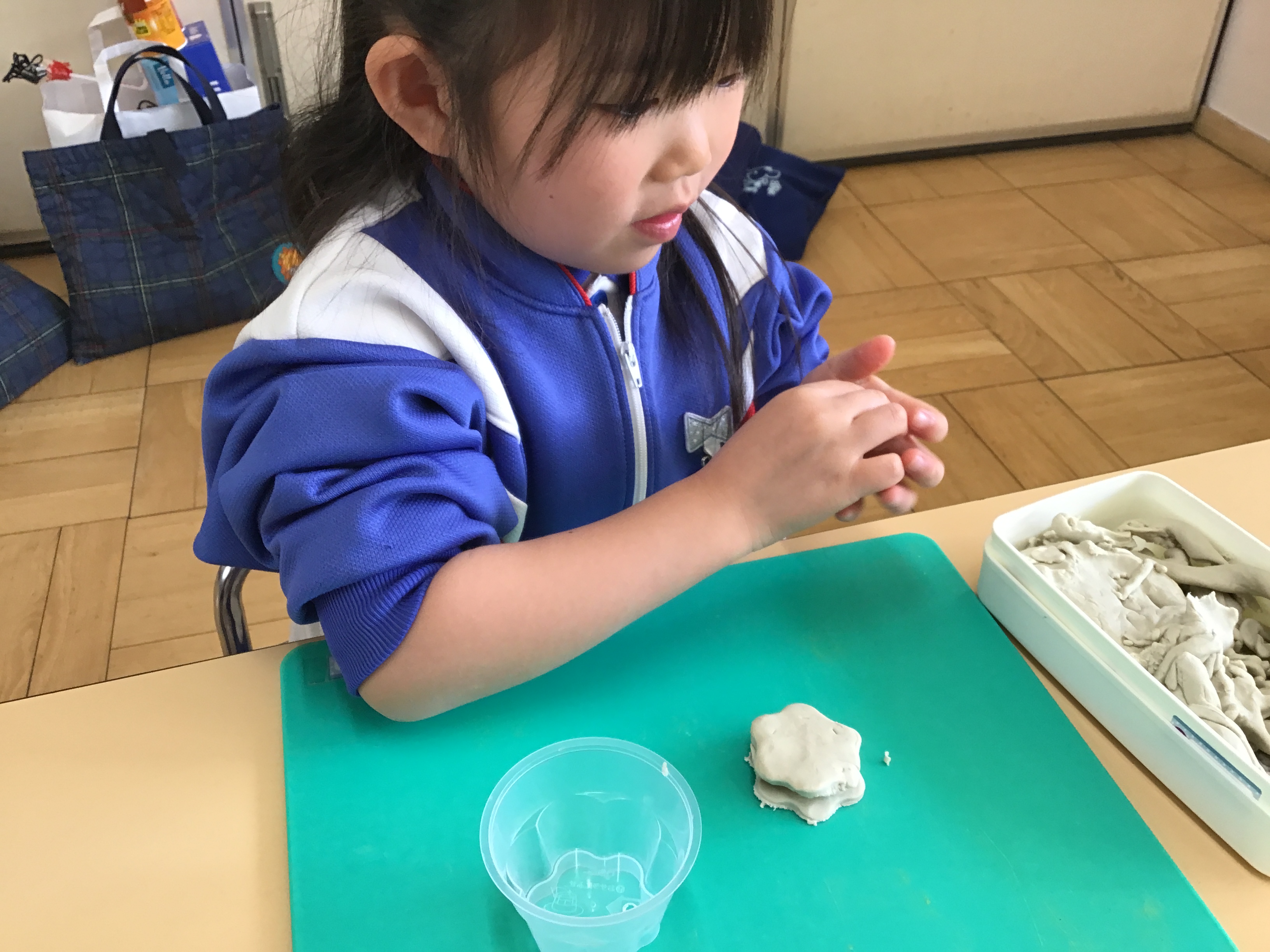 今日は、子どもたちが楽しみにしていたクッキーパーティー🍪年長、年中さんのクッキング活動を見学させてもらってから ずっと憧れていたので、何日も前からクッキー作りの工程を確認したり、粘土を使って型抜きの練習をしたりと準備は万端で当日を迎えました。