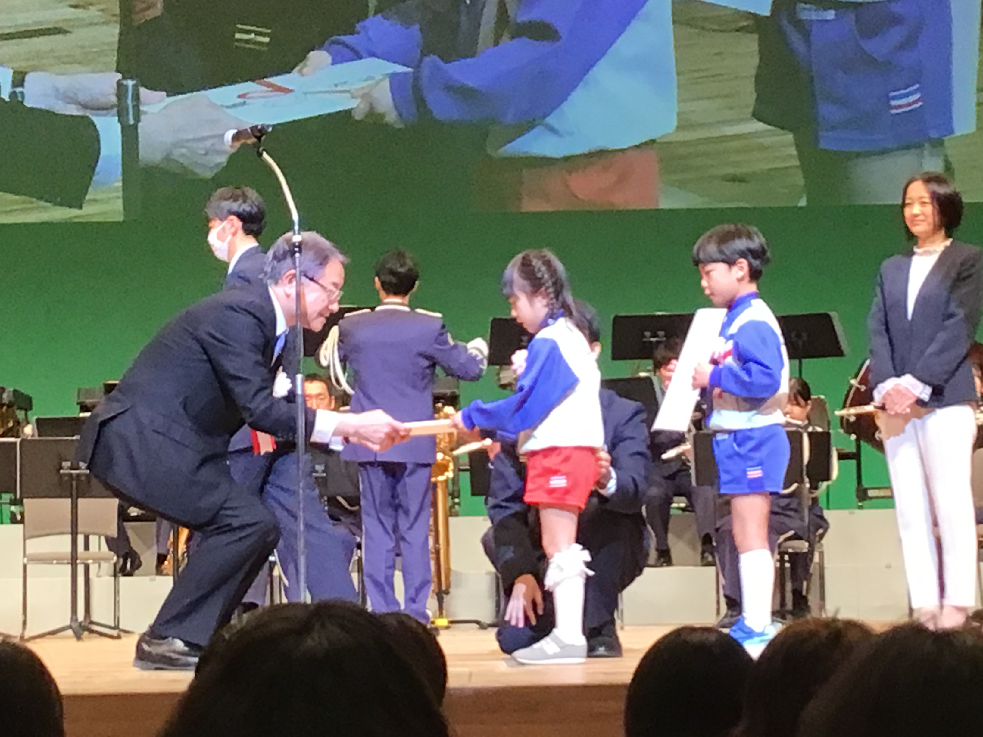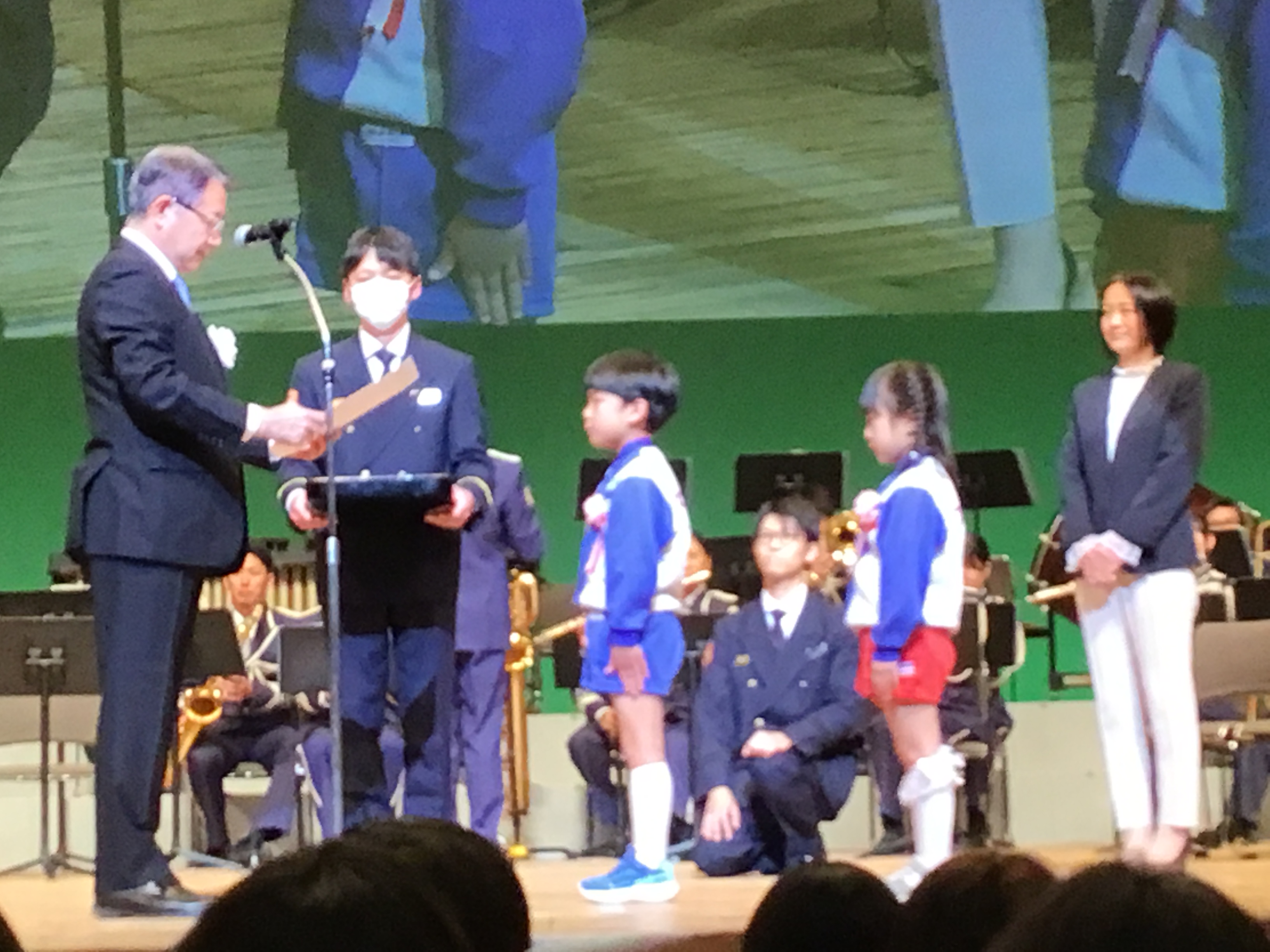 当日は、幼稚園代表として、『つきA組 生熊晴太さんとつきB組 山﨑凪結さん』が浜松市長中野祐介様より、表彰状と記念品を授与して頂きました。代表の二人の園児さんも園名と名前を呼ばれると大きな声で返事やお礼の言葉を伝えることが出来、大役をとても立派に務めてくれました。