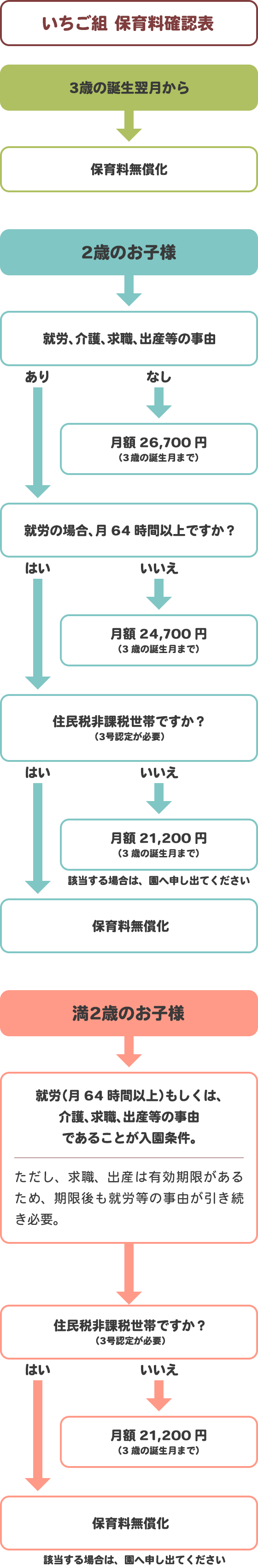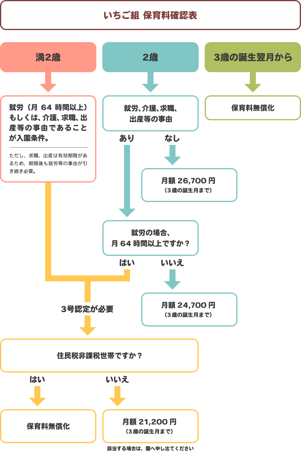 | 保育料 | 0円 (幼児教育無償化のためご負担いただきません) |